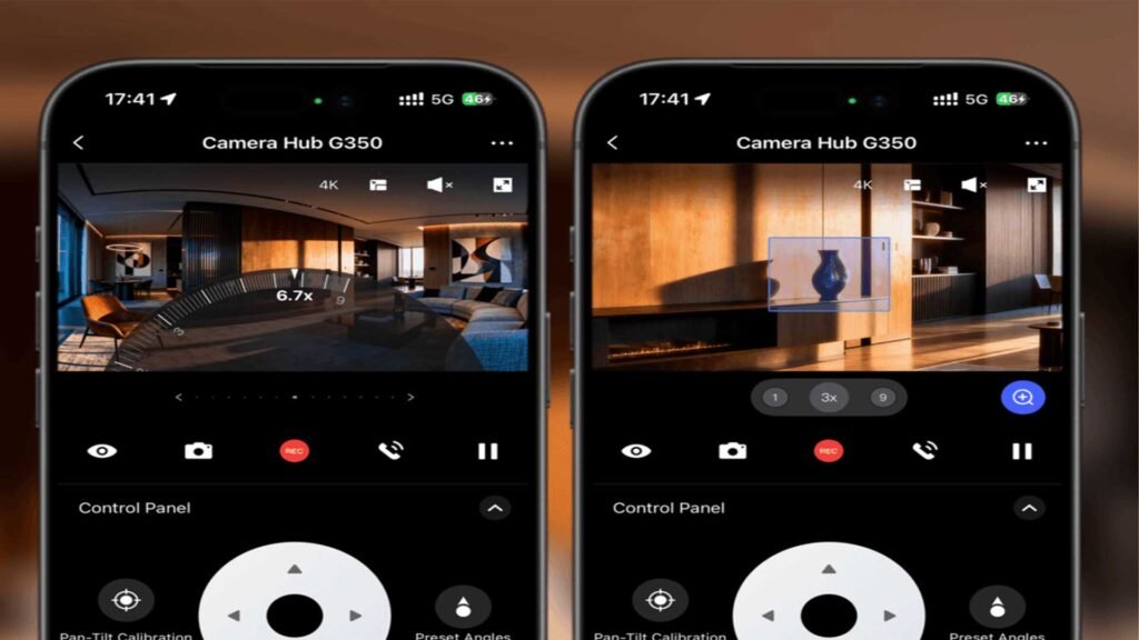 On the hardware side, the G350 leans into a more premium security experience. It features a dual-lens system, pairing a 4K wide-angle camera with a 2.5K telephoto lens. This setup enables up to 9x hybrid zoom, alongside full 360-degree coverage via pan and tilt movement. The idea is simple: one device can monitor an entire room while still capturing detail when it matters.