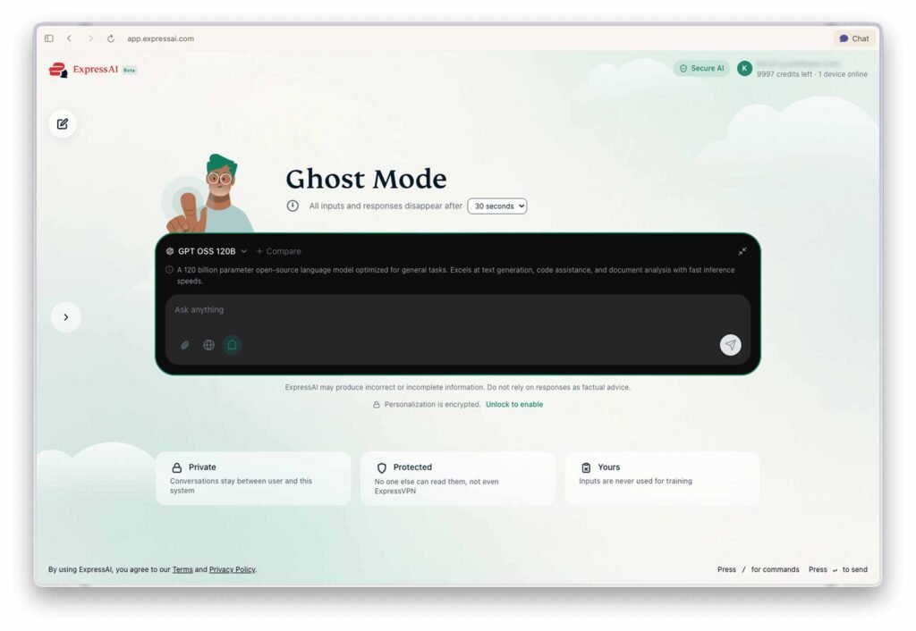 The company says this approach sets ExpressAI apart from many existing AI services, which still process user data on traditional servers and may use that data to improve their models. With ExpressAI, conversations are not fed back into training systems, and users can choose to automatically delete chats using a “ghost mode.” There’s also an encrypted vault feature, where access to stored conversations is protected by a user-controlled password.