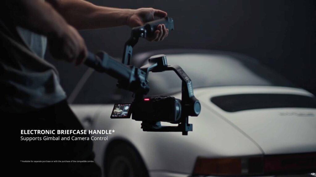 The RS 5’s new Electronic Briefcase Handle makes it possible to capture different camera angles from above or below the subject, while offering electronic control of the camera. Its comfortable grip and easy-to-reach joystick or button controls allow for one-hand operation.