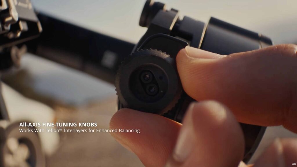 Fine-tuning knobs on each axis arm (front-back, tilt, roll, pan) are very easy to adjust thanks to the aluminium alloy and Teflon interlayers. This is soooo good. I found them far smoother than the RS 4 Mini I bought last year. I was able to balance the Canon R5 MII and 24-70mm zoom lens quite quickly. This isn’t a light payload, so I’m impressed. If you absolutely hate balancing a gimbal, this could be the main reason to buy the RS 5; it’s that good.